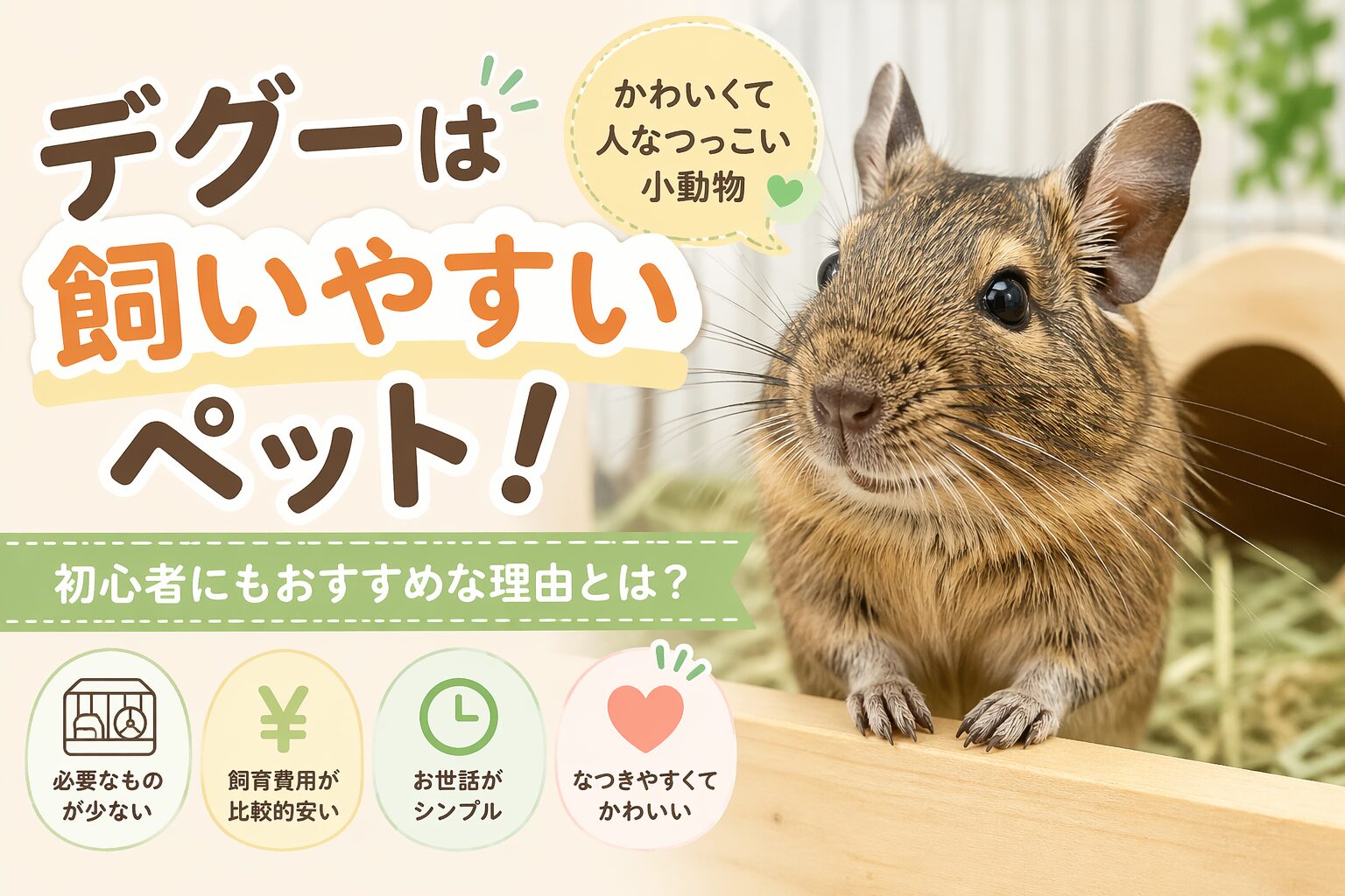 - デグーは条件付きで飼いやすいペット